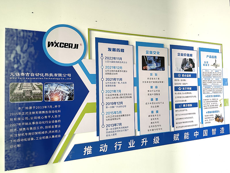 無(wú)錫賽吉自動(dòng)化科技有限公司始建于2013年5月。公司幾位核心骨干人員在2007年到2009年分別入行從事注塑機(jī)專(zhuān)用機(jī)械手研發(fā)、設(shè)計(jì)、機(jī)電、組裝、銷(xiāo)售與售后工作,目前企業(yè)分別有三大塊經(jīng)營(yíng)項(xiàng)目:自動(dòng)化設(shè)備(數(shù)控車(chē)床、注塑機(jī)專(zhuān)用取件機(jī)械手為主)設(shè)計(jì)、生產(chǎn)、銷(xiāo)售與服務(wù)。